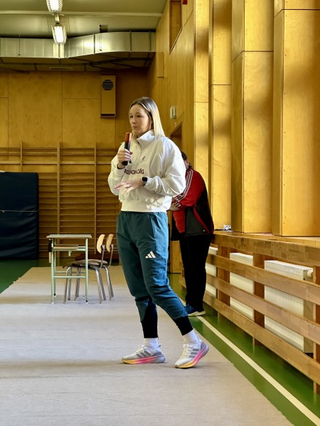Hámori Luca olimpikon az első magyar női ökölvívóként jutott ki az olimpiára 22 évesen. Az intézmény tanulóinak szánt előadását egy rövid átmozgató edzéssel kezdte, hozzá csatlakoztak az iskola ökölvívói is, akikkel együtt a sport alapmozdulatait tanították meg a résztvevőknek. Ezután a sportoló az olimpiáig vezető útjáról és a sporttal kapcsolatos élményeiről mesélt. Majd a diákok és pedagógusaik feltehették kérdéseiket, amelyek az idei olimpia és az élsport kapcsán megfogalmazódtak bennük." - Domán Vivien