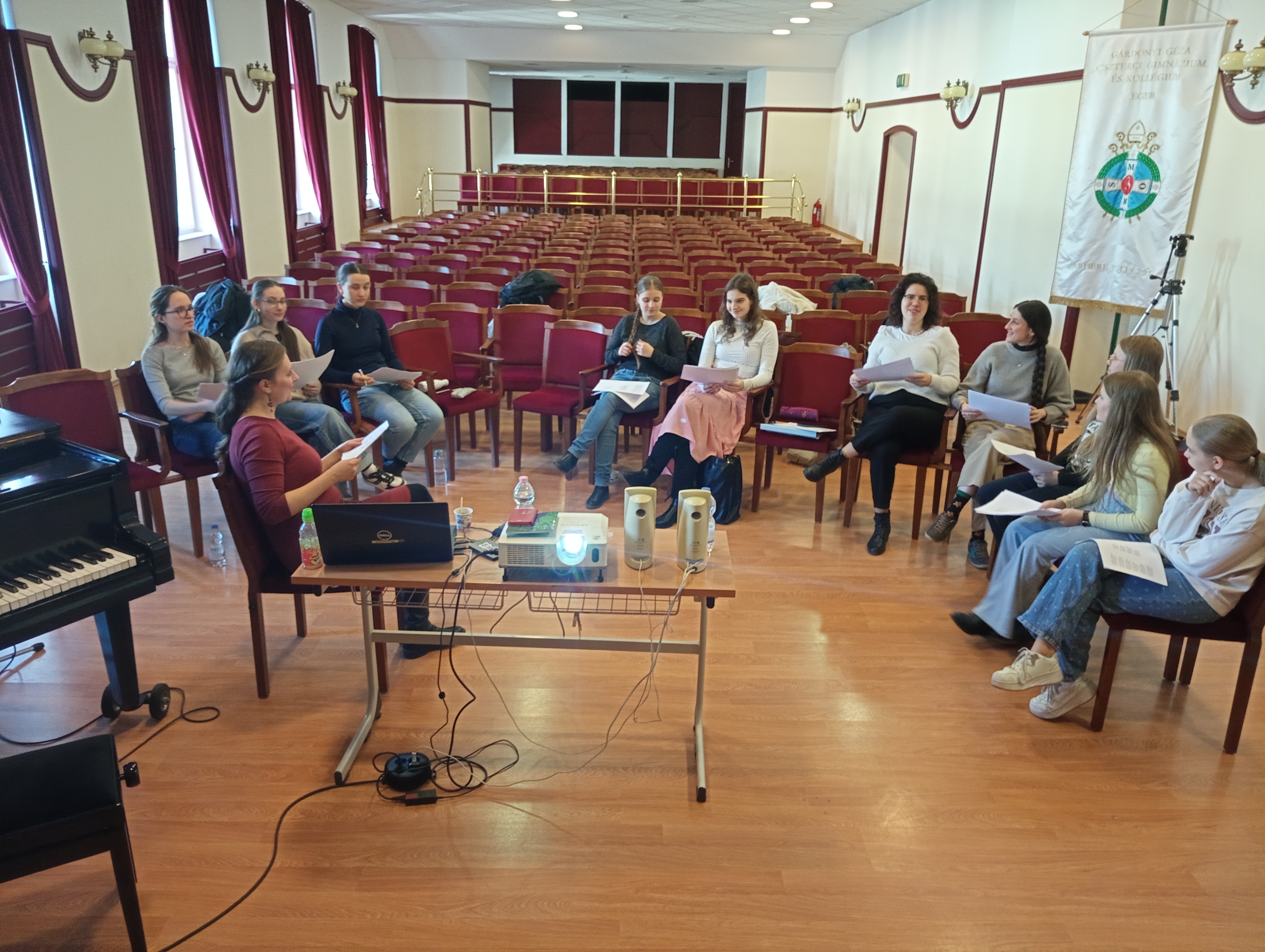 Február 27-én Enyedi Ágnes doktorandusz művésztanár, a Magos együttes énekese tartott egész napos kurzust, immár második alkalommal. Ezúttal a gyergyói népdalok világával, stílusával ismertette meg iskolánk együttesét.