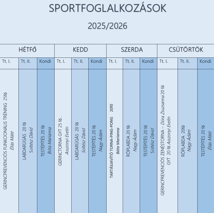 Diákjaink az 5 testnevelés órából kettőt a 8.-9. órában szervezett sportfoglalkozások közül választhatnak.